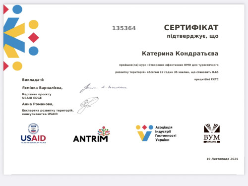 Індивідуальна освітня траєкторія дає студентам можливість самостійно формувати власний навчальний процес. Студенти 4 курсу освітньої програми “Туризм” продовжують реалізовувати цю можливость. Суха Анастасія, Лугина Валентина, Жданюк Дар’я та Шелюг Карина завершили вивчення чергових навчальних курсів на платформах «ВУМ online» та Prometheus.
